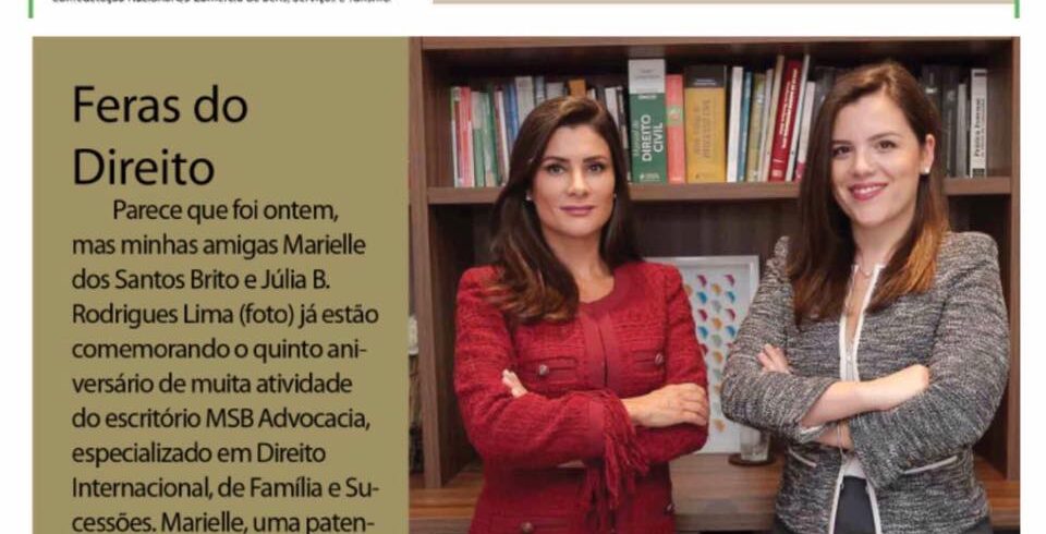 Feras do Direito, MSB Advocacia, escritório de Advocacia Brasília especializado em Direito Internacional, Direito de Família e Tribunais Superiores, completou no dia 11/08, cinco anos de muito sucesso. Marielle dos Santos Brito, patense de família tradicional mineira, e Julia Botelho Rodrigues Lima, filha do Embaixador Pedro Luiz Rodrigues, celebram o aniversário em grande estilo. MARIELLE DOS … Continue lendo Jornal de Brasília 17/08/2017 – Advocacia Brasília