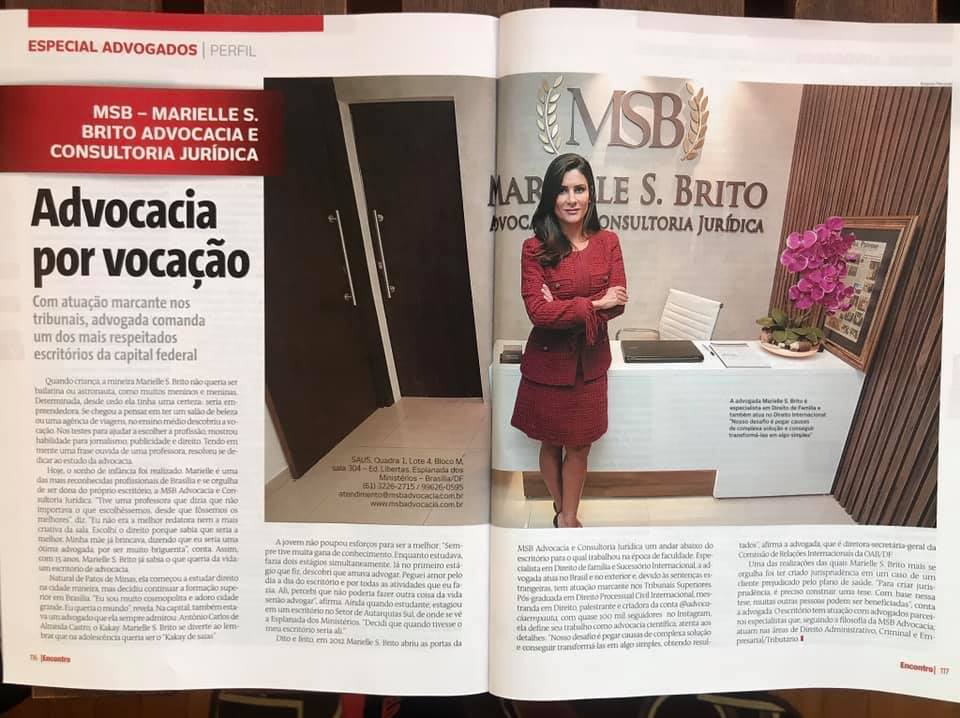 Advogado com atuação nacional e internacional MSB Advocacia com Atuação Nacional e Internacional Escritório atende, no Brasil e no exterior, demandas de diversas áreas e sócia-fundadora se especializa em novas legislações nacionais e estrangeiras Com a carreira bem consolidada em Brasília, a mineira, de Patos de Minas, Marielle S. Brito tem passado os últimos meses...Continuar lendo